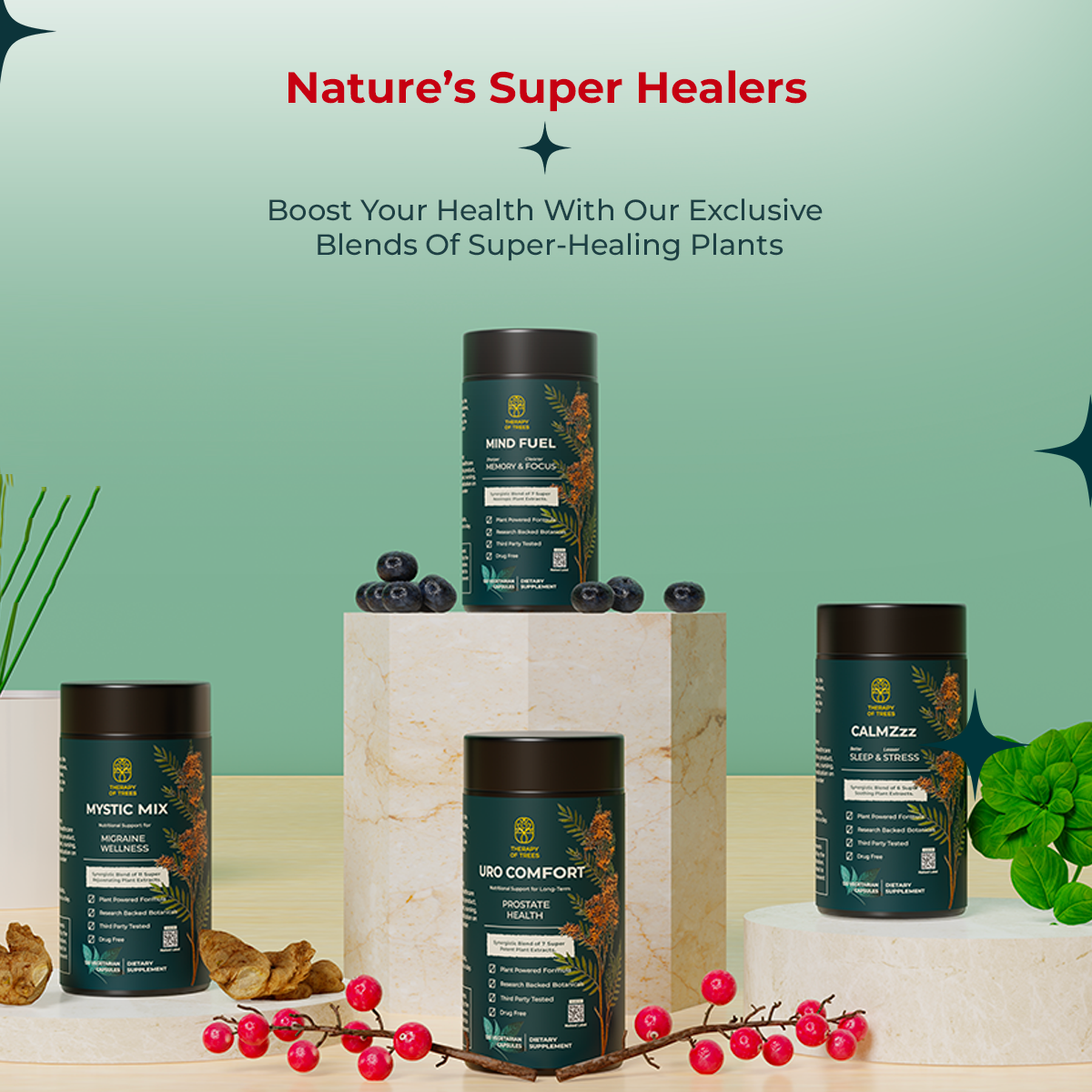 Our herbs don't just work; they work together. Seamlessly combined, they magnify each other's benefits, crafting formulas that transcend the efficacy of singular ingredients. It's synergy, redefined.