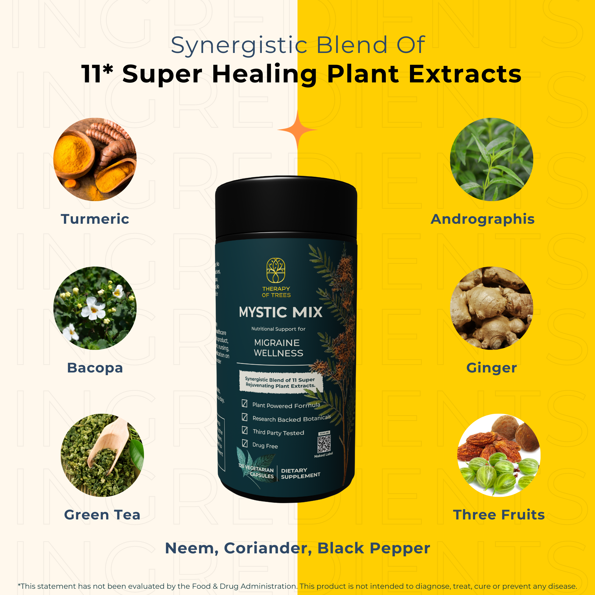 What sets Neem apart in the context of migraine care is its ability to modulate the body's immune response, potentially alleviating the systemic inflammation often linked with chronic migraines. In addition, Neem's natural antimicrobial properties help maintain a healthier internal environment, further supporting migraine prevention efforts. Including Neem in Mystic Mix is a strategic choice, aimed at leveraging its unique immune-supporting benefits to offer a more comprehensive approach in reducing the frequency and severity of migraines, underlining our commitment to holistic health solutions.*